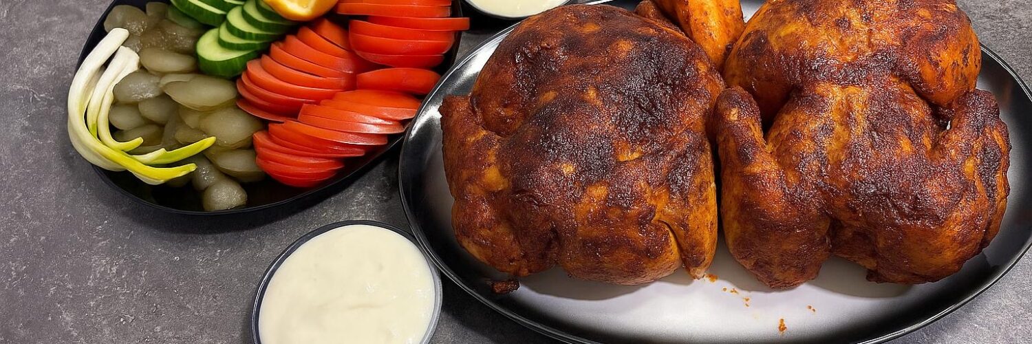 يقدّم مع كريم الثوم وسلطة وخضار مشوية